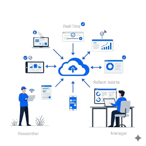 Instantly sync data from the field to your cloud dashboard. Researchers and managers get real-time insights, allowing for quicker decision-making and continuous project oversight.